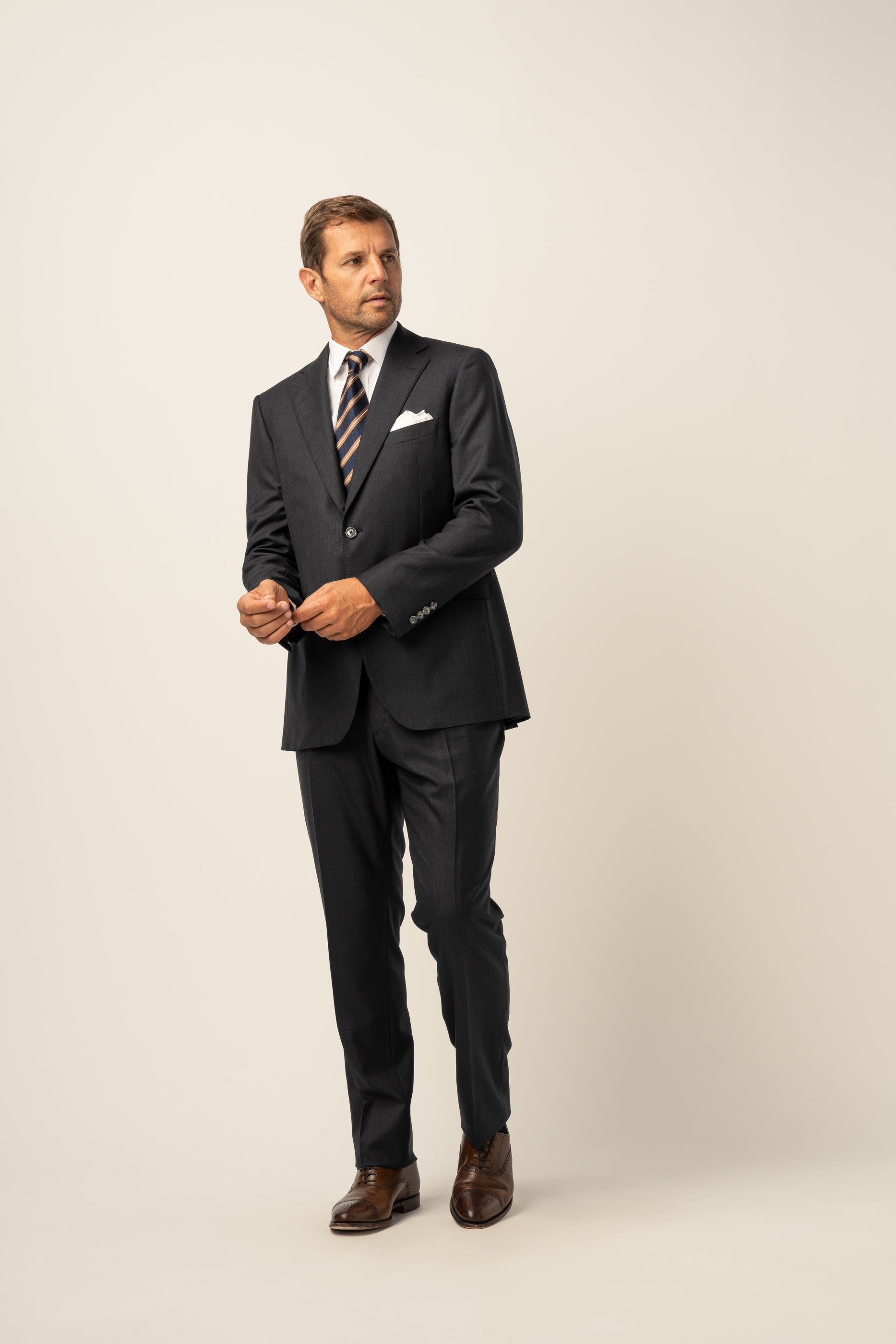 Fatos que duram a vida toda - é o que dizem os nossos clientes. Em lã ou linho, A construção é tradicional "half-canvas" ou sem forro. Usamos apenas tecidos dos melhores fabricantes internacionais numa curadoria discernida e criteriosa. Pode também personalizar e construir o seu fato de raíz com o nosso serviço made-to-measure. Saiba mais aqui.